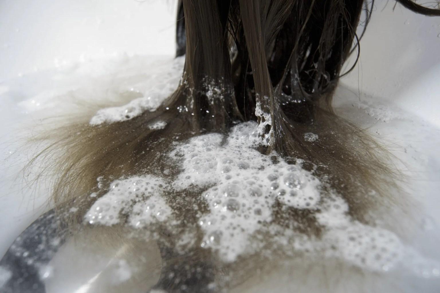 炭酸の2000分の1の超微細な気泡を含んだマイクロナノバブル水を前処理に使用することで薬剤の浸透効率が◎質感もUP♪アフターシャンプーでもmarbb水を使用してシャンプーを行います【肩下~ロング¥20,000】